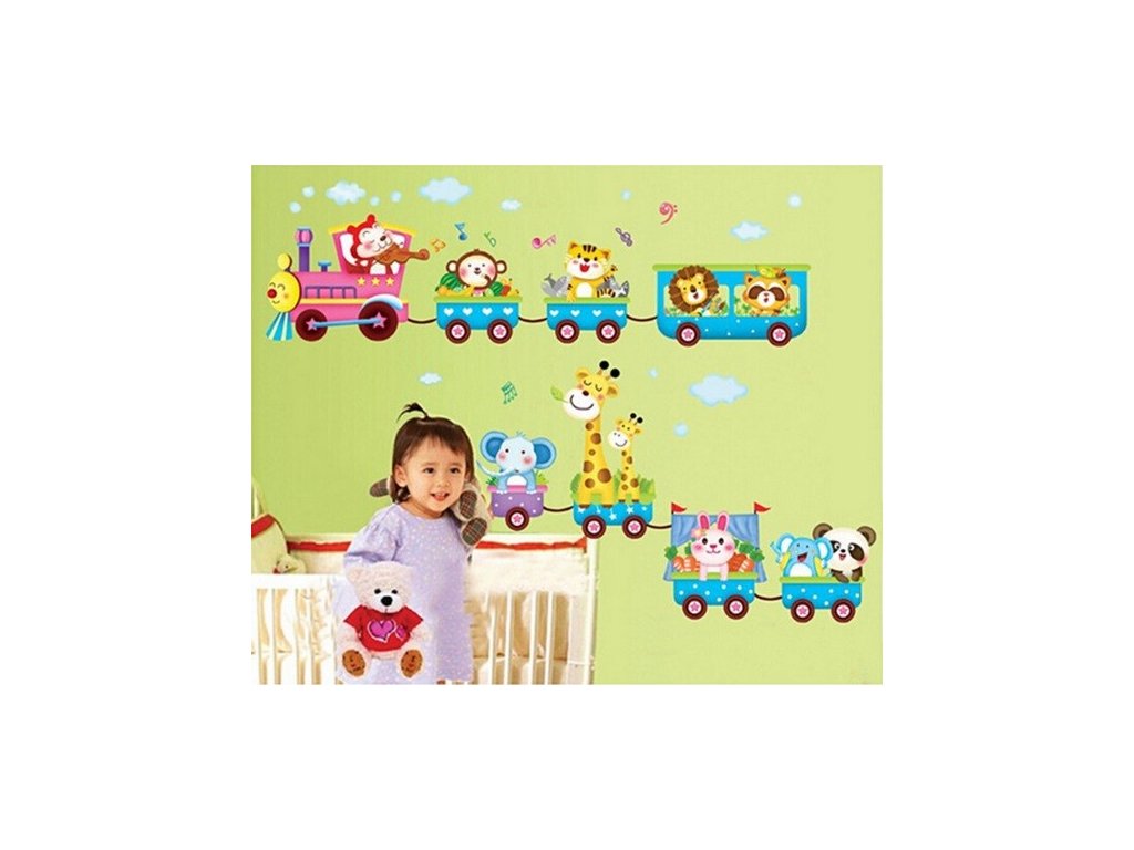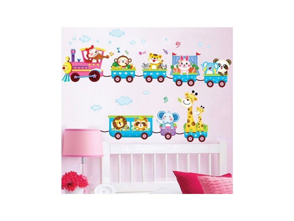 Nálepka na zeď Dětský vláček se zvířátky