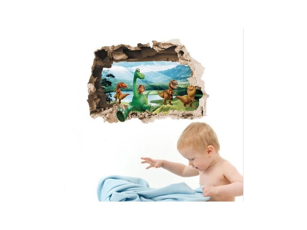 Samolepka pro rozvoj představivosti vašich dětí. Krásná 3D iluze s přátelskými dinosaury.