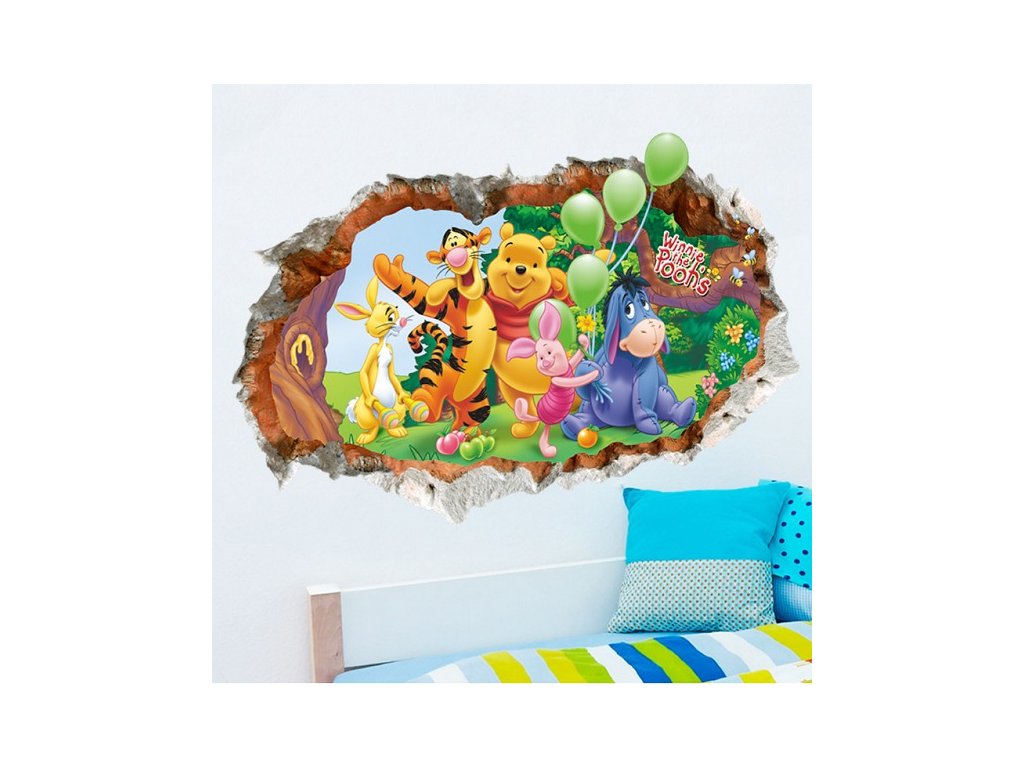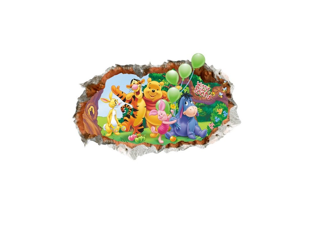 3D nálepka na zeď Medvídek Pú a jeho přátelé ve zdi
