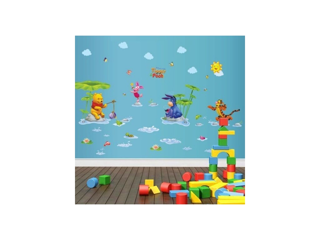 3D Nálepka na zeď Medvídek Pů na rybaření