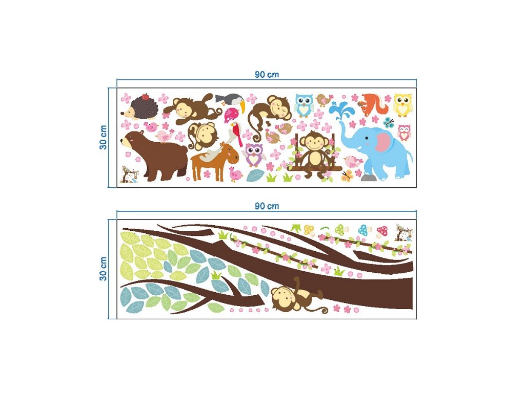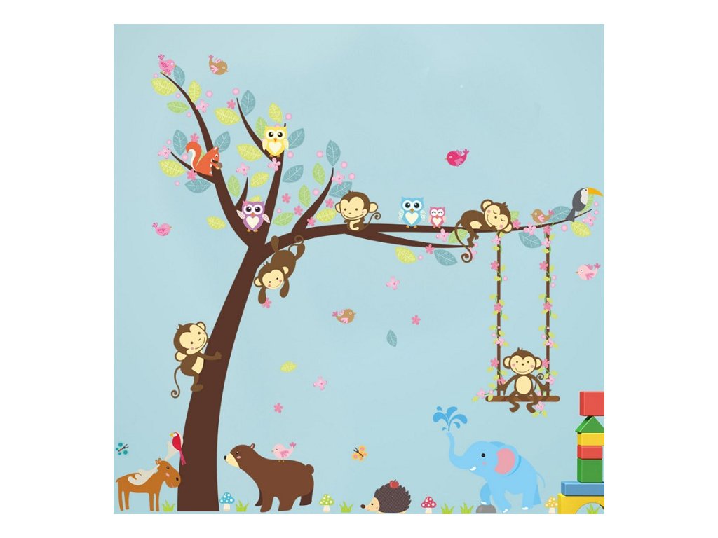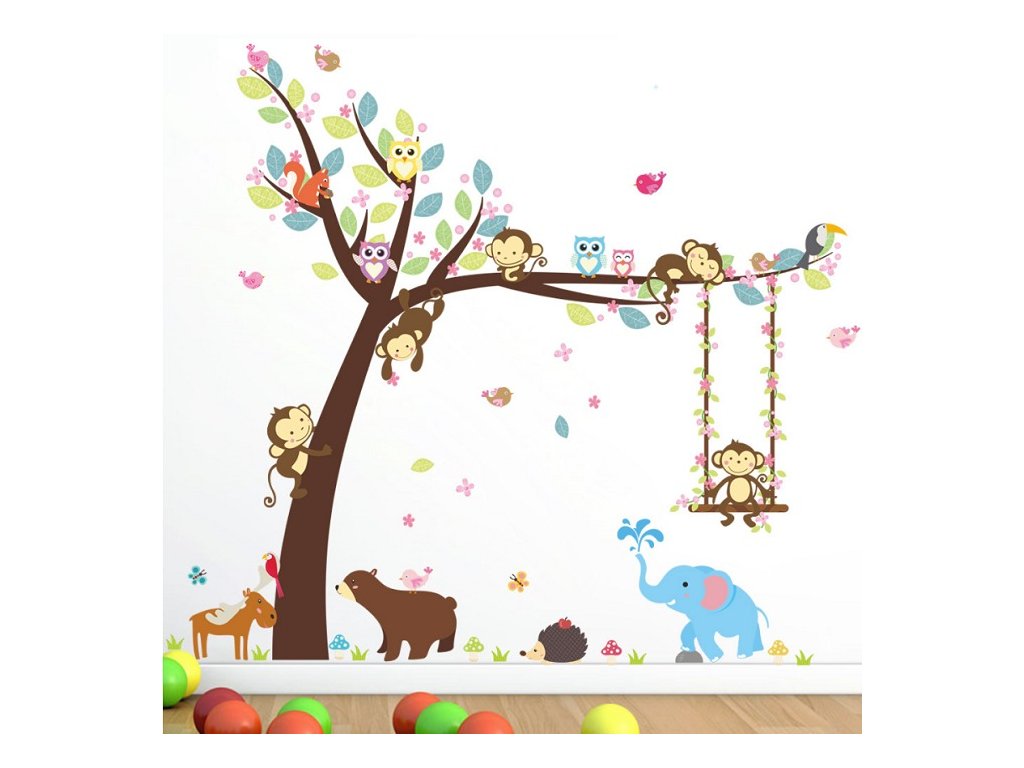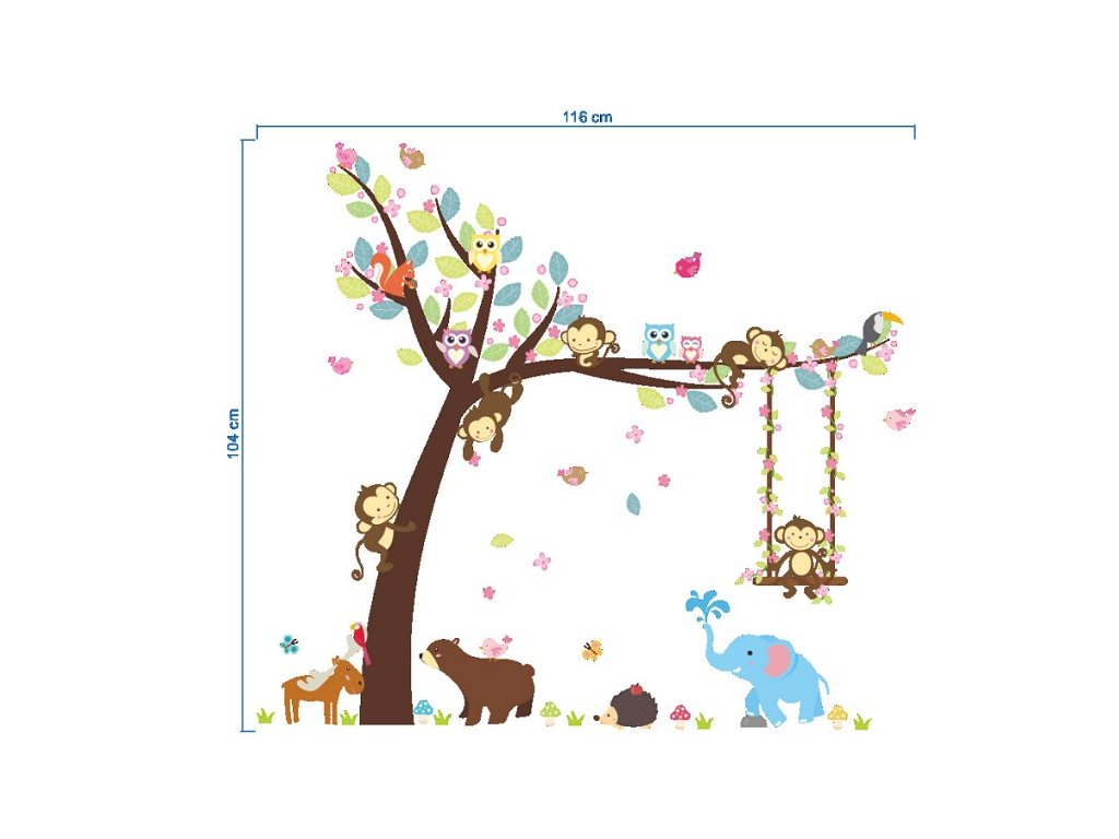3D Nálepka na zeď - Strom se zvířátky 104x116cm