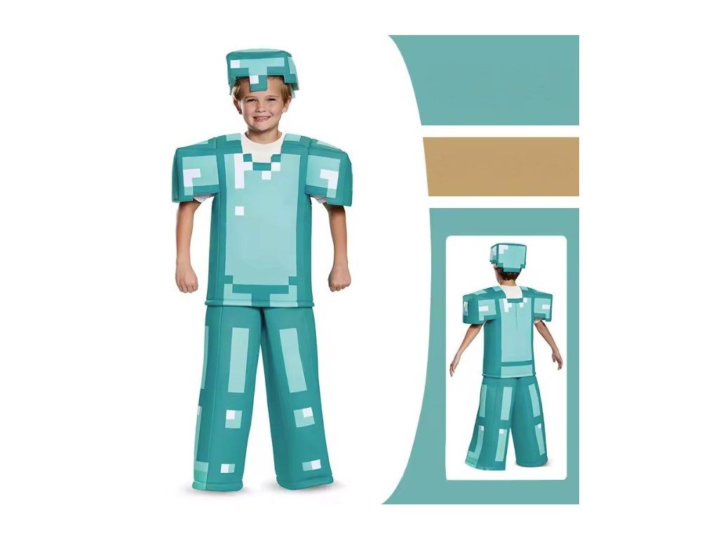 Diamantový kostým Minecraft pro malé hráče Minecraftu jako stvořený, užij si dobrodružství a zábavu v oblečení jako pravý bojovník.
