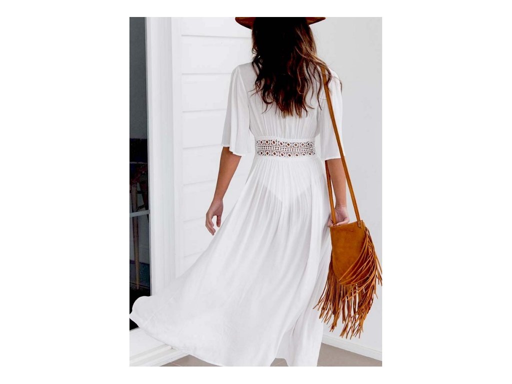 Okouzlující dámské plážové šaty Kiara pro bohémský a romantický vzhled. Nechte se unášet vlnami v tomto vzdušném a jemném kousku.