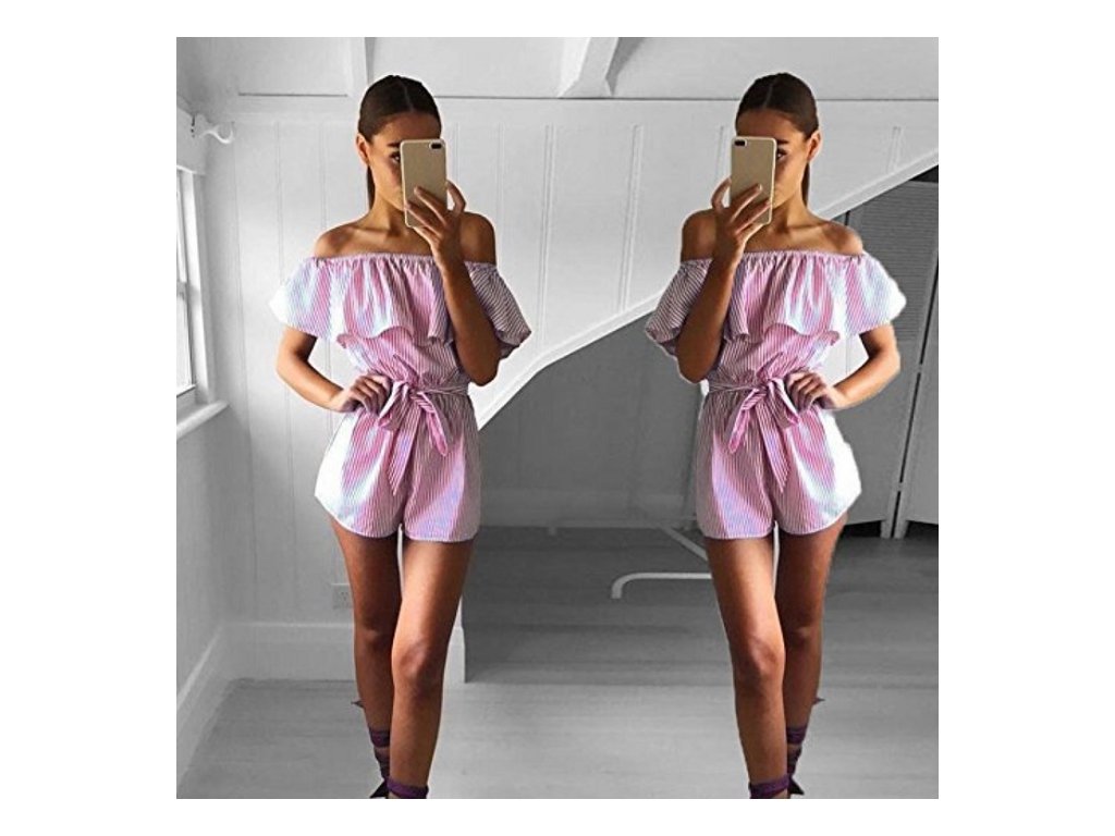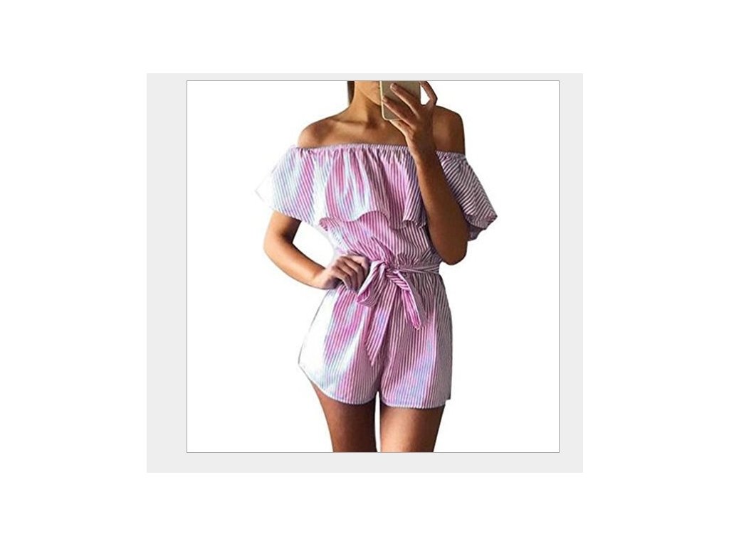 Bílo-růžový dámský letní overal s pruhovaným vzorem, dostupný ve 2 barvách. Stylový a půvabný model, který perfektně padne a vykouzlí vám úsměv na tváři.