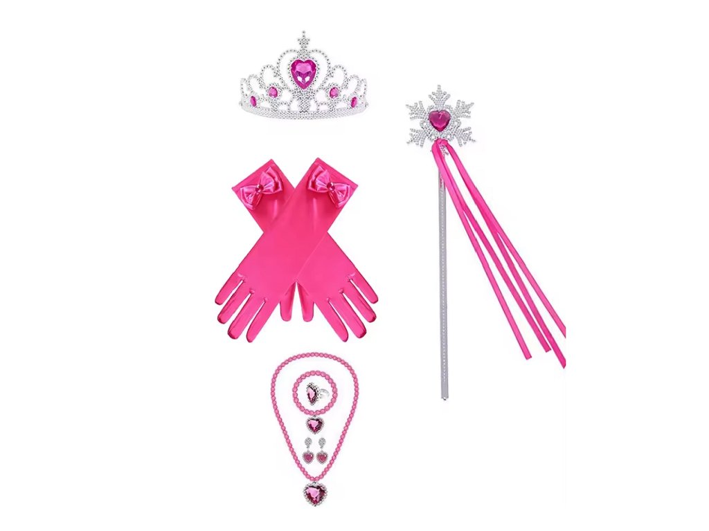Sada obsahuje: korunku, hůlku, rukavice a náhrdelník, náramek, náušnice a prsten