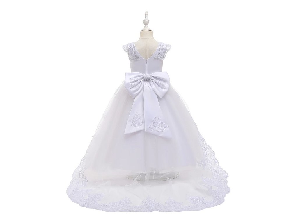 Bílé společenské šaty vhodné na 1. svaté přijímání nebo také na svatbu pro družičku a jiné společenské události. Šatičky mají vzadu mašli na zavázání.
