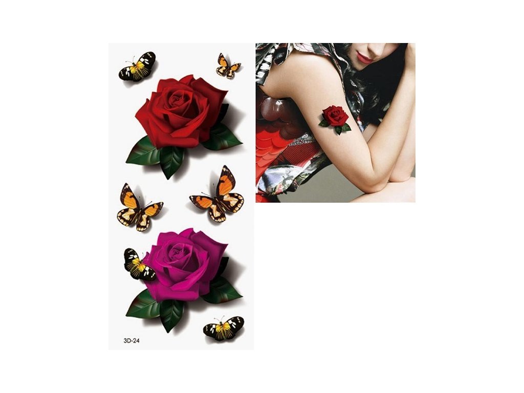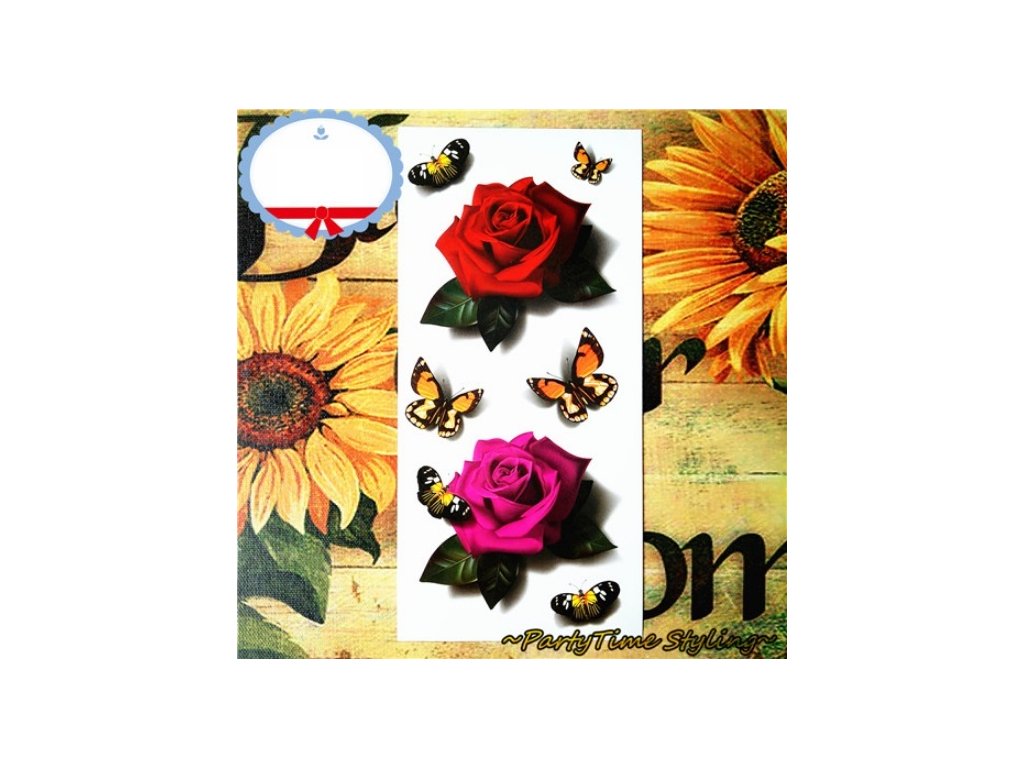 Balení: 1 fólie ( 10 samostatných tetování - 5 motýlů+2růže)