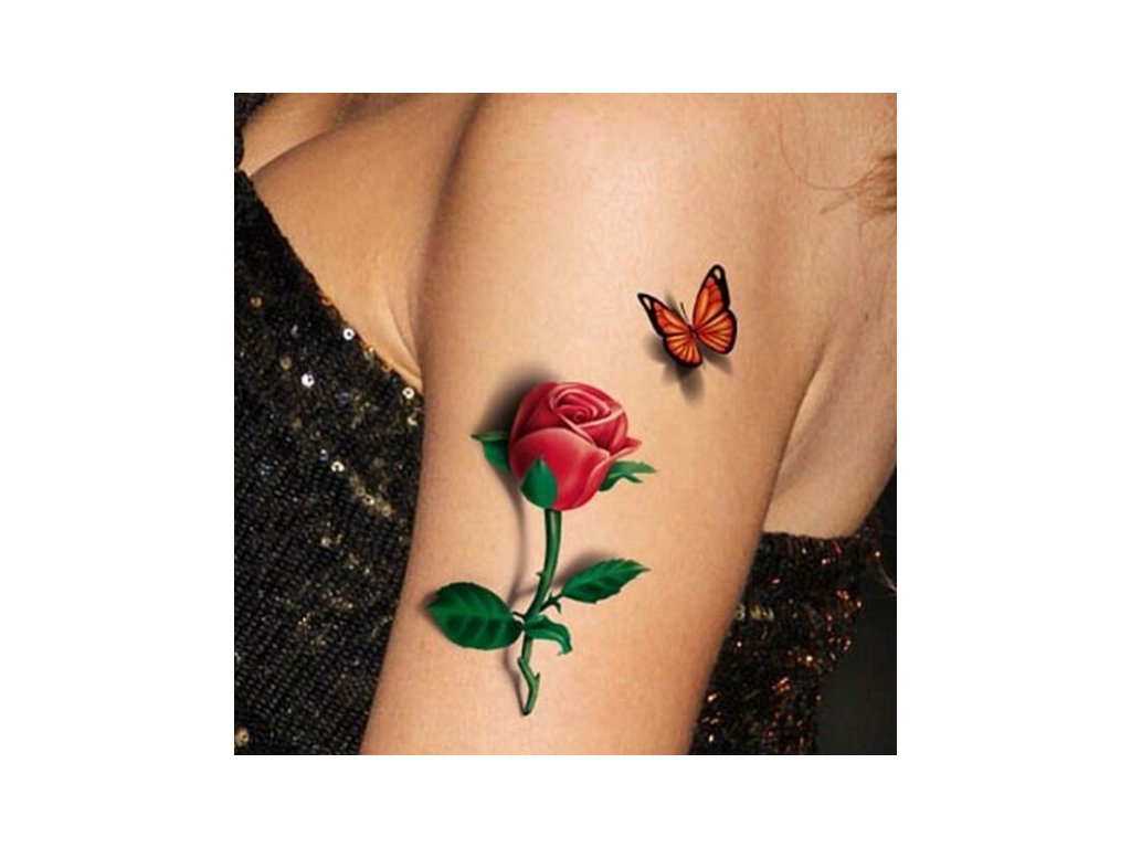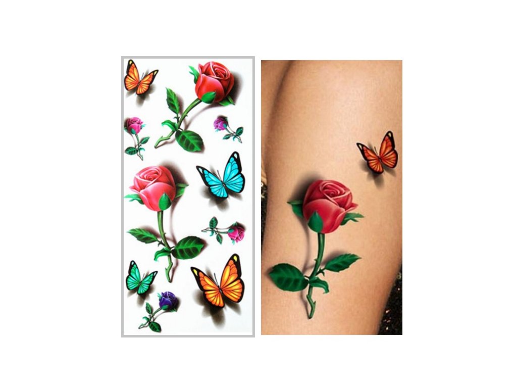 Dočasné tetování na tělo 3D růže a motýly