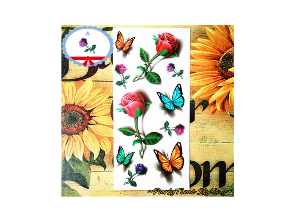 Balení: 1 fólie (10 samostatných tetování - 4 motýli+6ruží)
