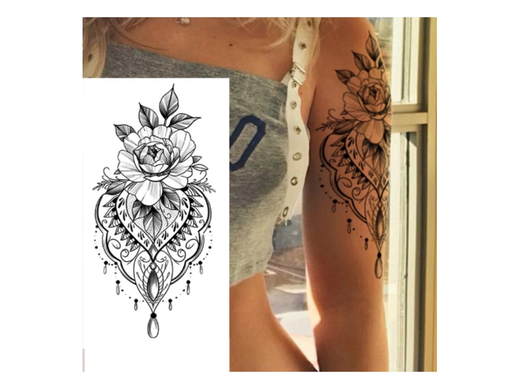 Dočasné tetování na tělo Mandala "Peony"