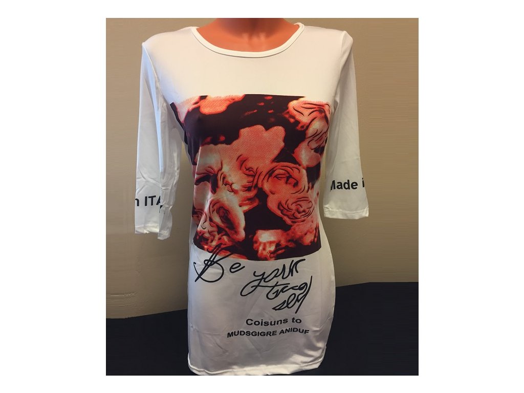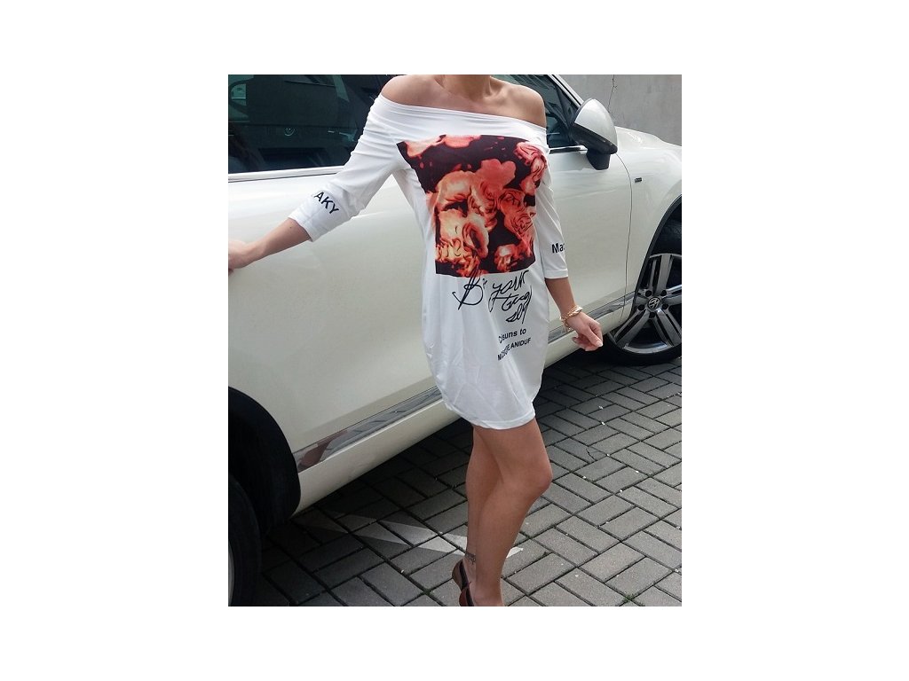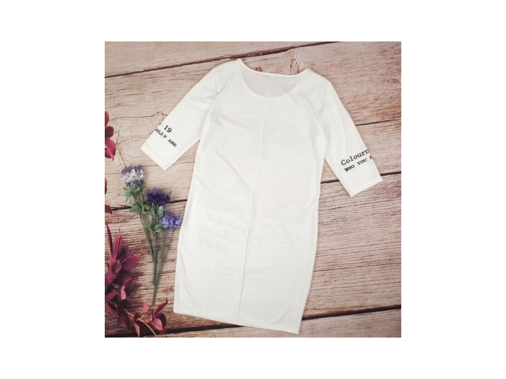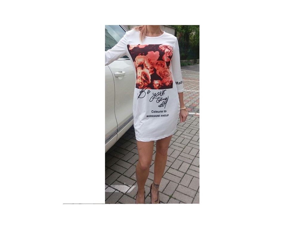 L: prsa 98 cm, ramena 40 cm, délka šatů 85 cm, délka rukávu 42 cm