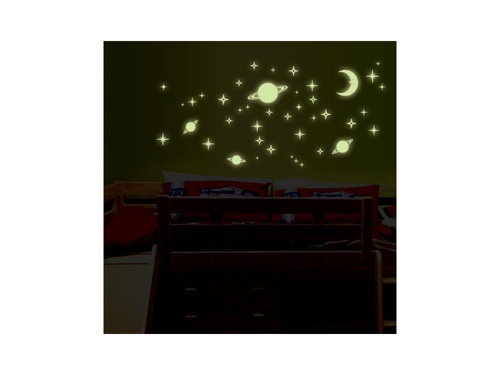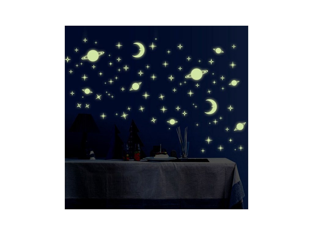 Fosforová nálepka na zeď Měsíc, planety a hvězdy