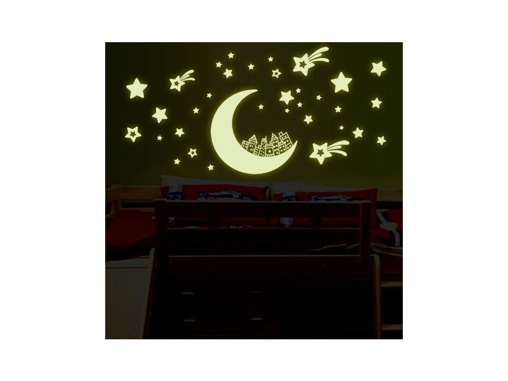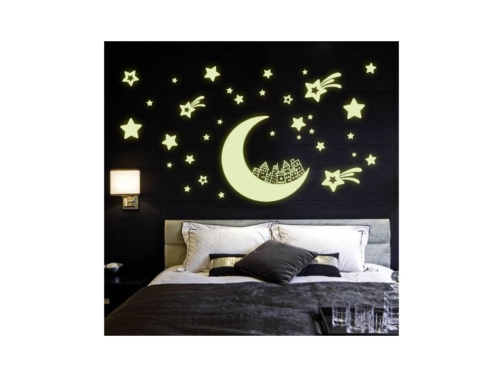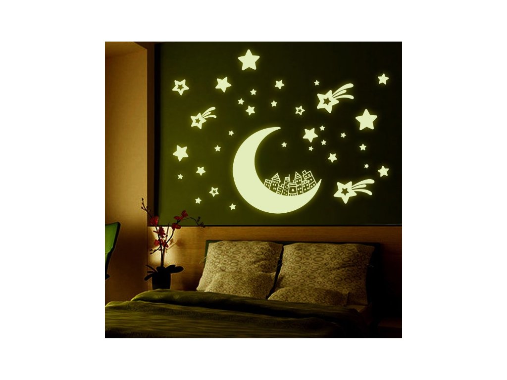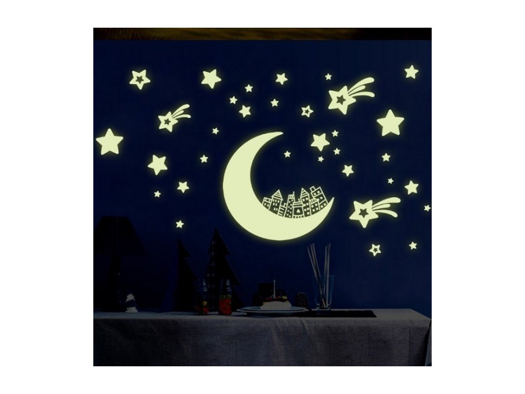 Fosforová nálepka na zeď Měsíc a hvězdy