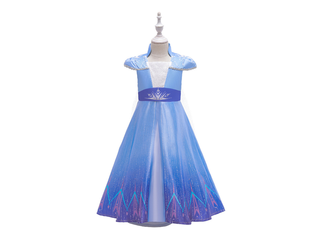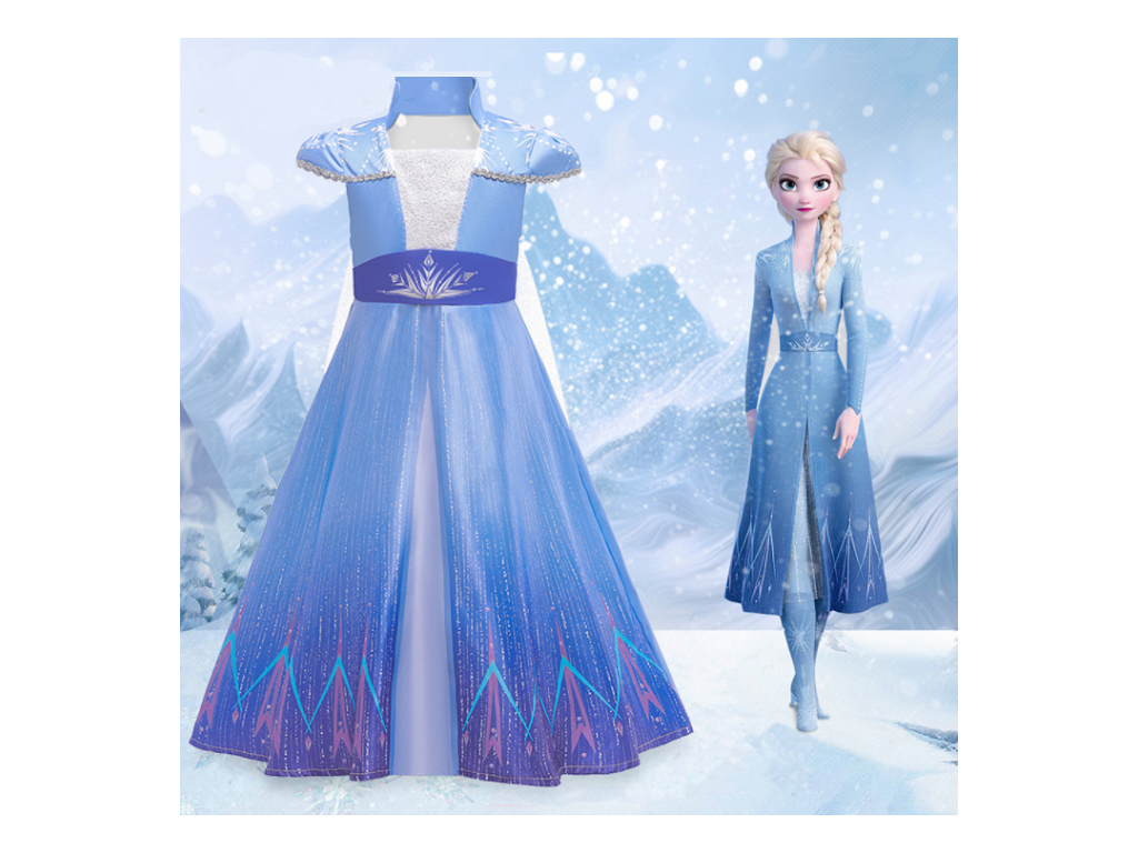 - Modré šaty: Klasické modré šaty, které Elsa nosila v průběhu svých dobrodružství ve filmu. Tyto šaty věrně napodobují vzhled z Frozen 2 a dodají vaší princezně královský vzhled.