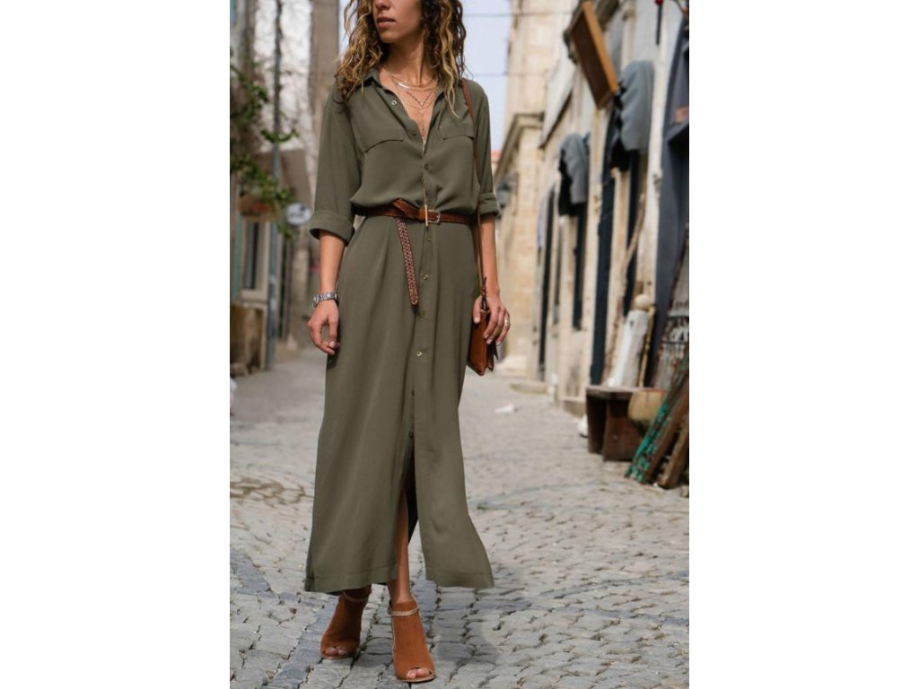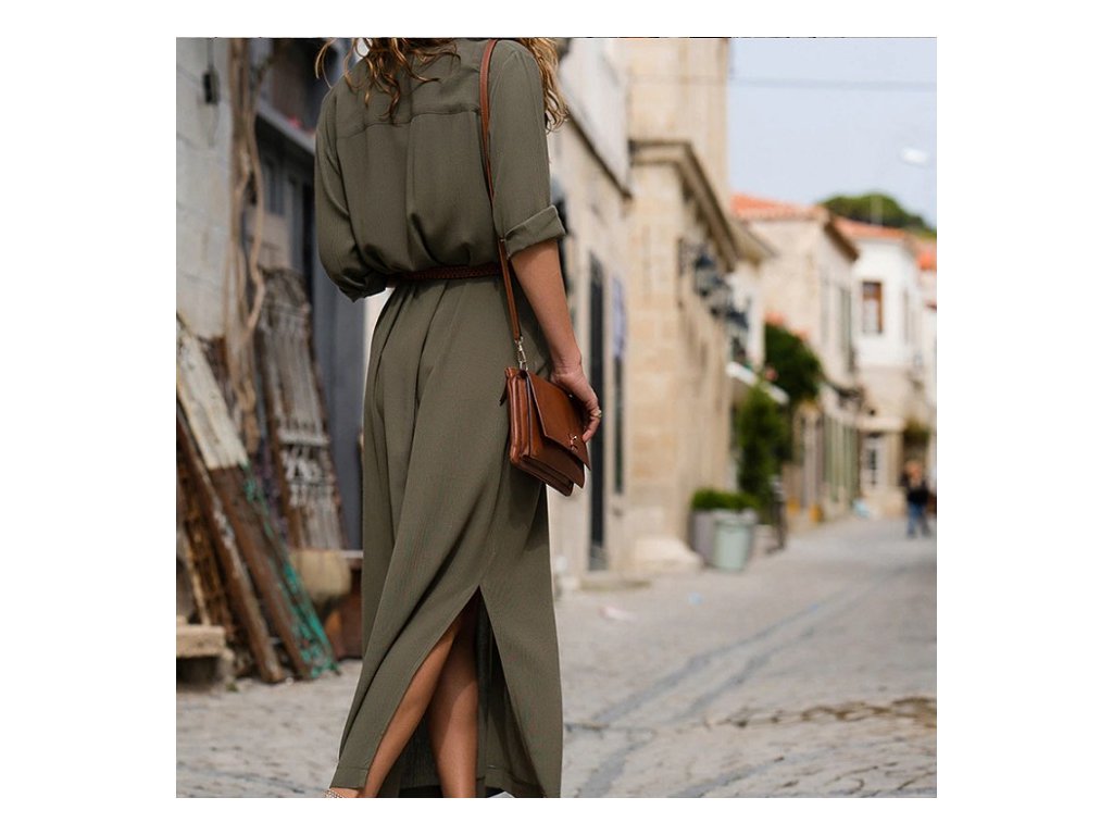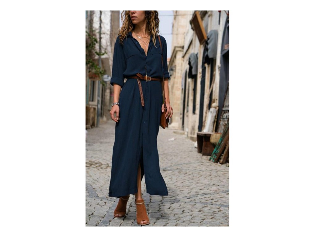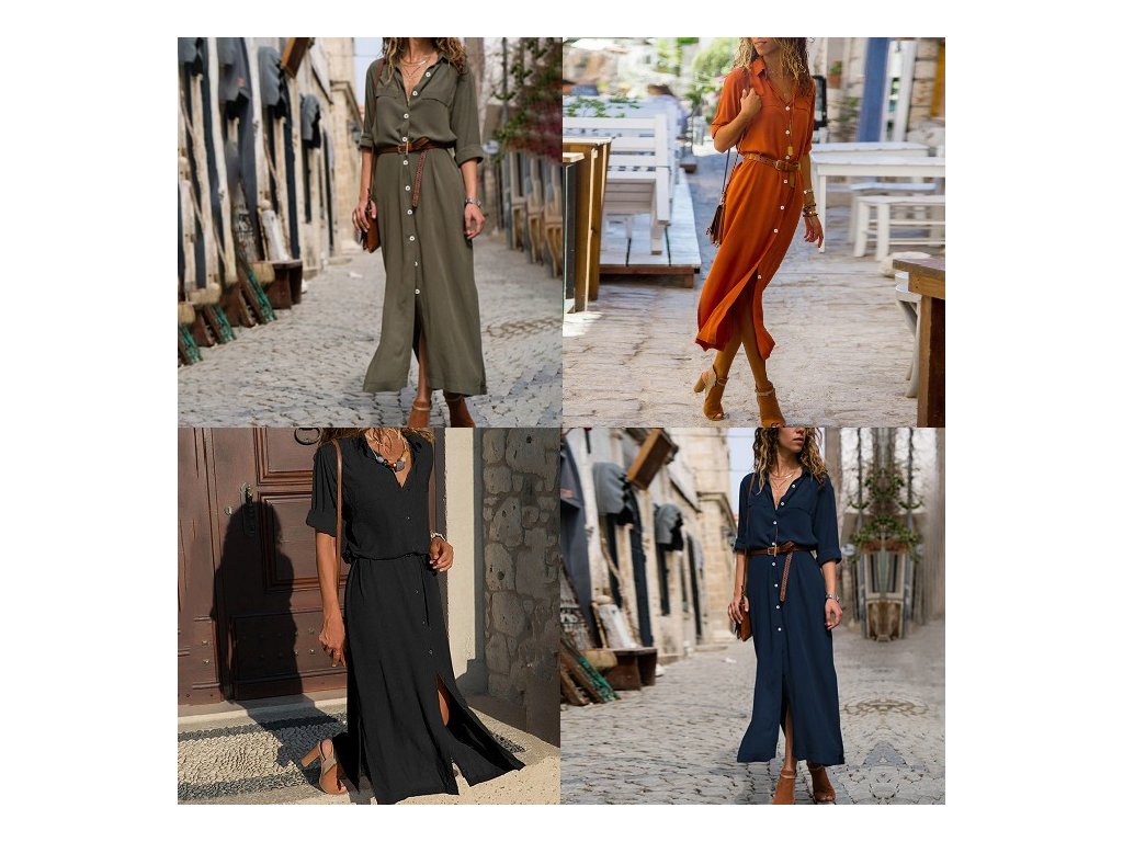Elegantní košilové šaty s límečkem jsou vhodné do práce, do města, na běžné nošení či jen tak ven s přáteli. Krásné letní šaty na knoflíčky jsou skladem ve čtyřech trendy barvách. Dlouhé šaty mají košilový střih s falešnými kapsami na hrudi. Pro zvýraznění vaší postavy jsou v pase staženy gumičkou. Menší rozparky po stranách šatů vypadají jednoduše šik!