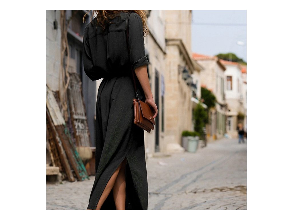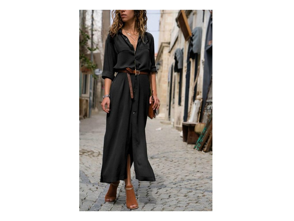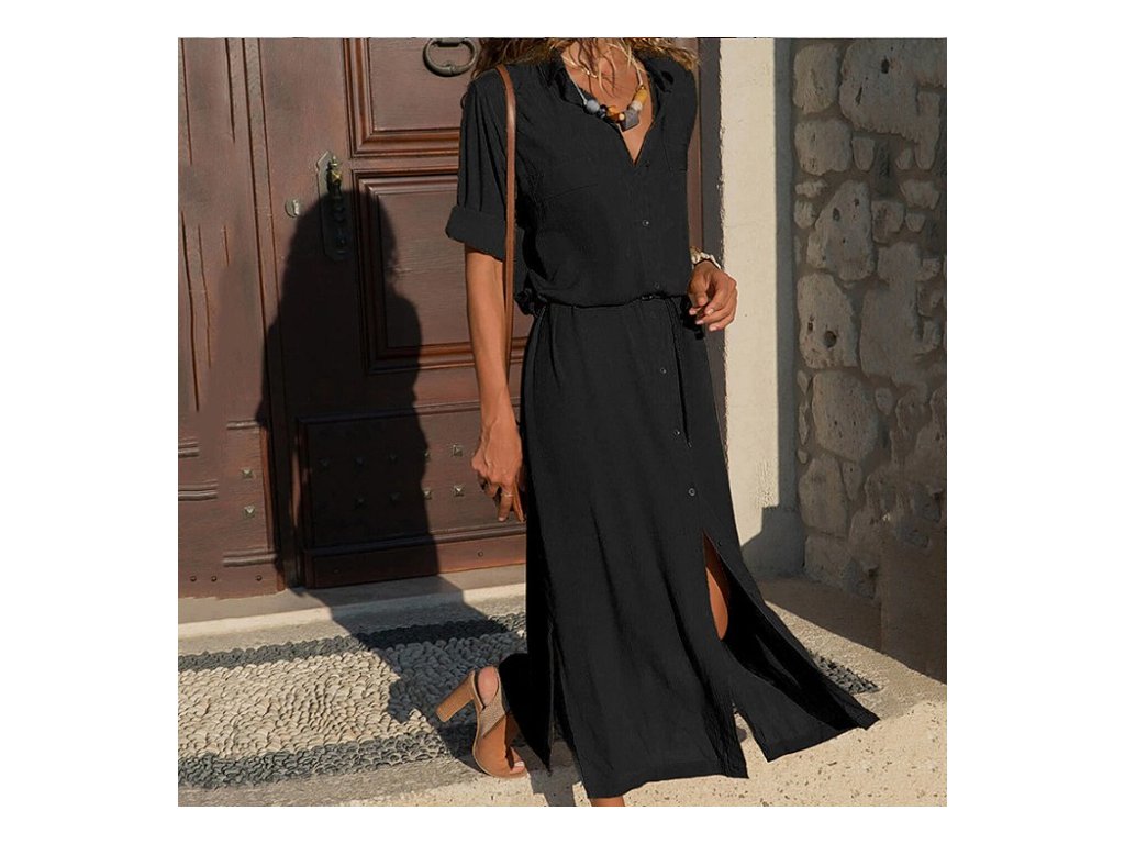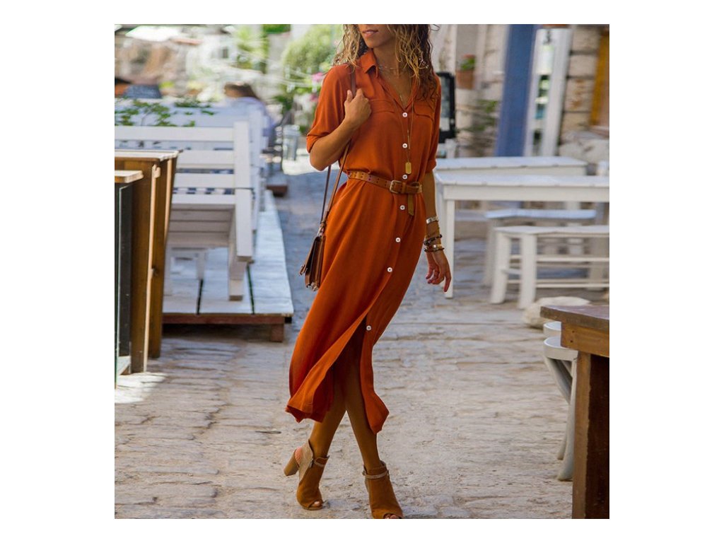 Elegantní košilové šaty s límečkem jsou vhodné do práce, do města, na běžné nošení či jen tak ven s přáteli. Krásné letní šaty na knoflíčky jsou skladem ve čtyřech trendy barvách. Dlouhé šaty mají košilový střih s falešnými kapsami na hrudi. Pro zvýraznění vaší postavy jsou v pase staženy gumičkou. Menší rozparky po stranách šatů vypadají jednoduše šik!