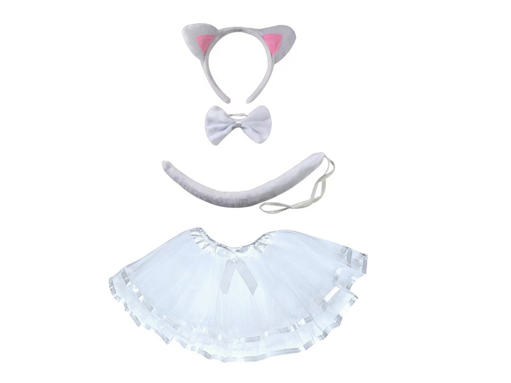 Balení obsahuje: týlní sukni, čelenku s oušky, motýlek na gumku, ocas s gumou na pás (délka 30cm + gumka)Triko není součást balení.