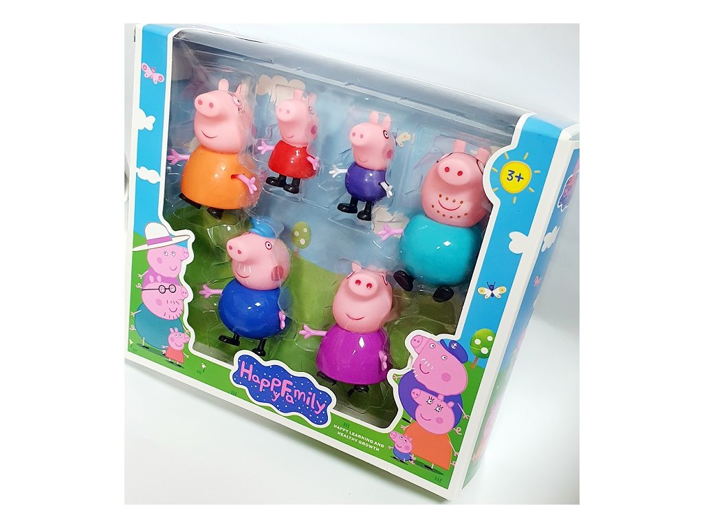 Figurky pro děti z jejich oblíbené pohádky Peppa Pig. Postavičky Peppa Pig s rodinou jsou vhodné na hraní pro děti nebo je lze využít i jako dekoraci narozeninového dortu pro malé oslavence. Potěšte své nejmenší s jejich oblíbenými postavičkami prasátko Peppa, prasátko Tom, George a ostatní.
