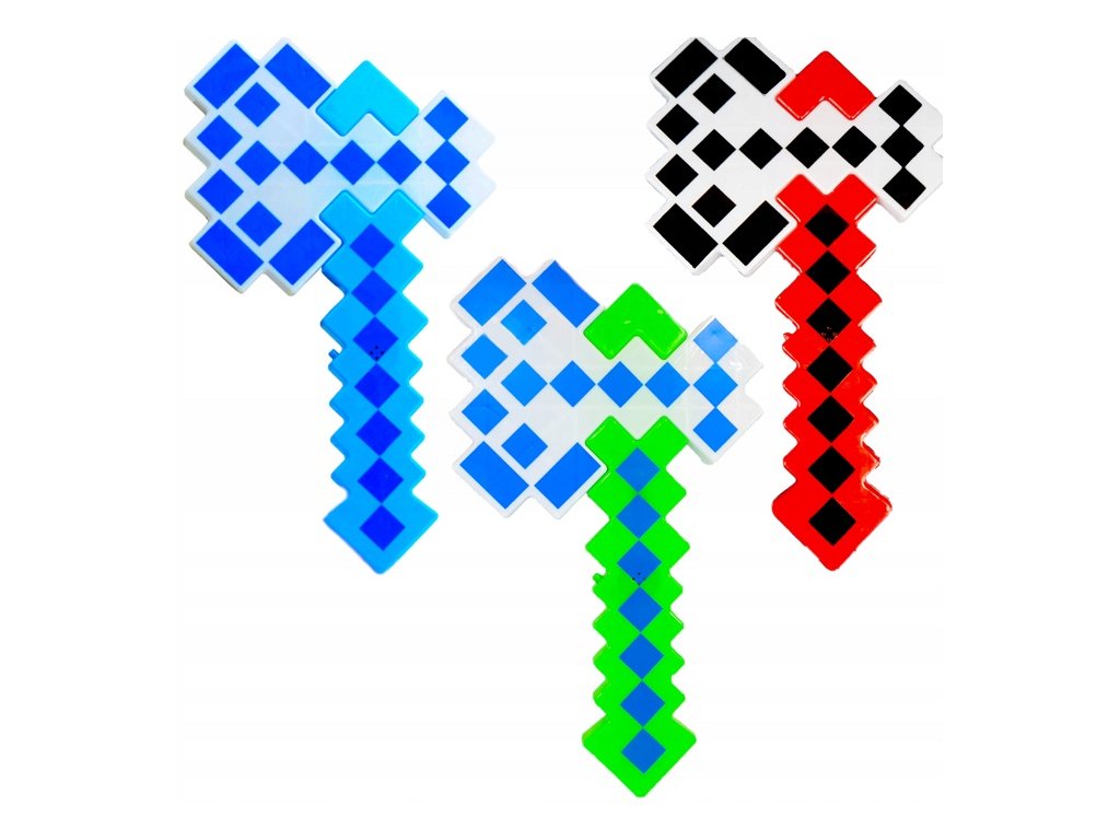 Svítící sekera ze světa Minecraft – Diamantová, Železná nebo Smaragdová. Vyzbroj se na kostková dobrodružství!